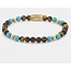 Bead armband, handgemaakt van 4mm stenen (Tijgeroog, Turkoois, en goud plated) met ion-plated edelstalen sluiting. Het Rebel & Rose sieraad is makkelijk te combineren met andere zilveren, leren of kralenarmbanden.