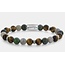 Bead armband, handgemaakt van 8mm stenen (Tijgeroog, Agaat, Labradoriet en kleine Stainless Steel elementen) met een zilverkleurige sluiting. De Rebel & Rose sieraden zijn makkelijk te combineren met andere zilveren, leren of kralenarmbanden.