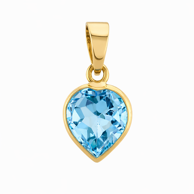 Deze vintage hanger is vervaardigd uit 14 karaat geelgoud en heeft de vorm van een elegant hart. In het midden is een prachtige hartgeslepen blauwe topaas geplaatst, die een heldere en frisse blauwe kleur heeft.