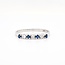 Deze verfijnde vintage 14k witgouden rijring straalt ingetogen elegantie uit. Het ontwerp bestaat uit vier diepblauwe saffieren, afgewisseld met drie fonkelende briljanten, waardoor een harmonieuze balans tussen kleur en schittering ontstaat. Door haar slanke vorm is de ring ook perfect te dragen als aanschuifring.