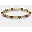 Bead armband, handgemaakt van 6mm stenen (Tijgeroog, Zonnesteen, goudkleurige stenen) met een goud ion-plated edelstalen sluiting. Het Rebel & Rose sieraad is makkelijk te combineren met onze andere kralenarmbanden.