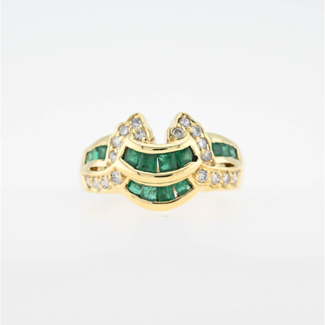 Vintage 18 karaat gouden ring met smaragd en lab diamanten – 6,1 gram – maat 17